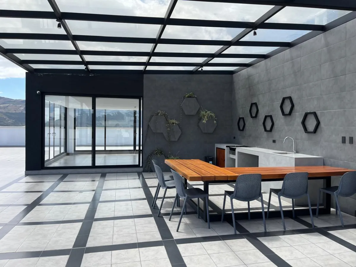 Descubre este espectacular departamento moderno de 92.70 m² + 28.27 m² de terraza pergolada, área social iluminada, ubicado en una de las zonas más exclusivas del norte de Quito: Ponceano.