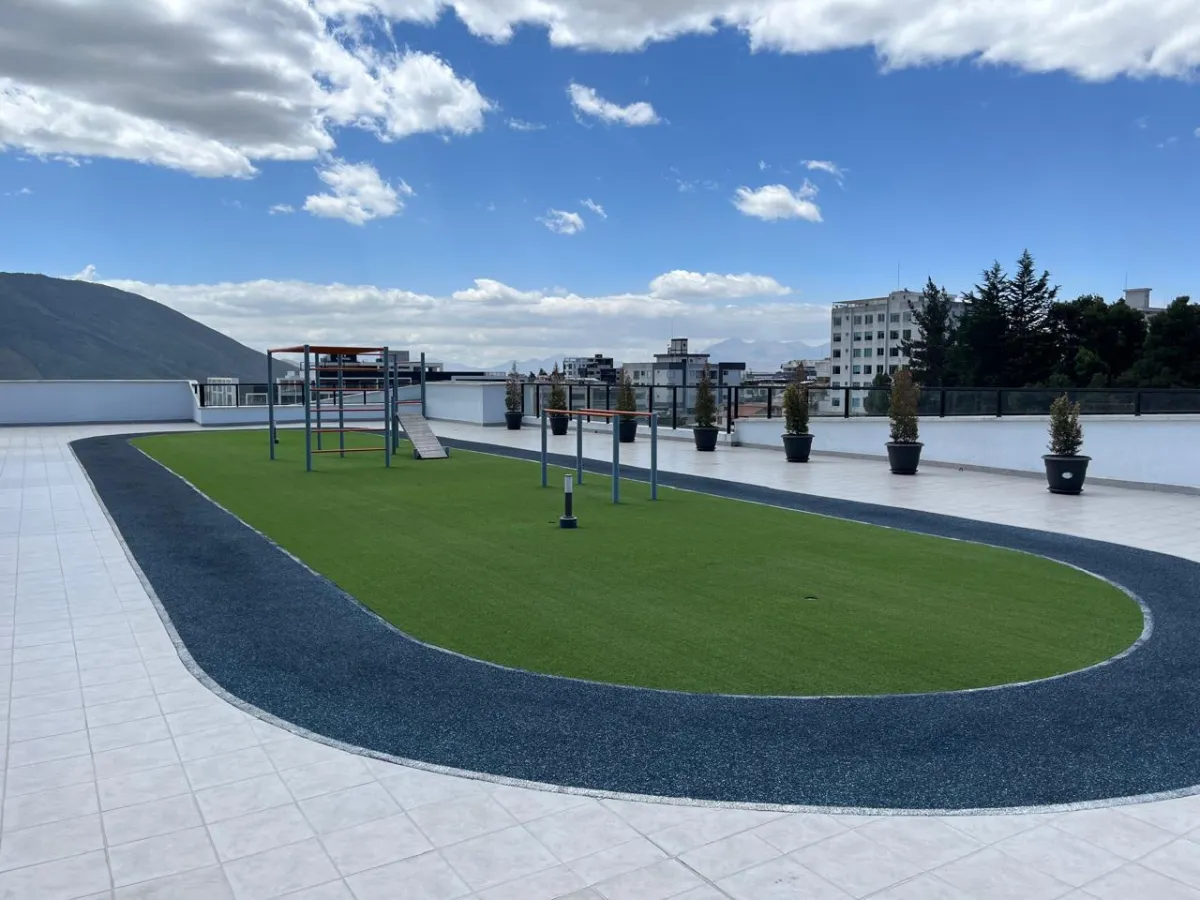 Descubre este espectacular departamento moderno de 92.70 m² + 28.27 m² de terraza pergolada, área social iluminada, ubicado en una de las zonas más exclusivas del norte de Quito: Ponceano.